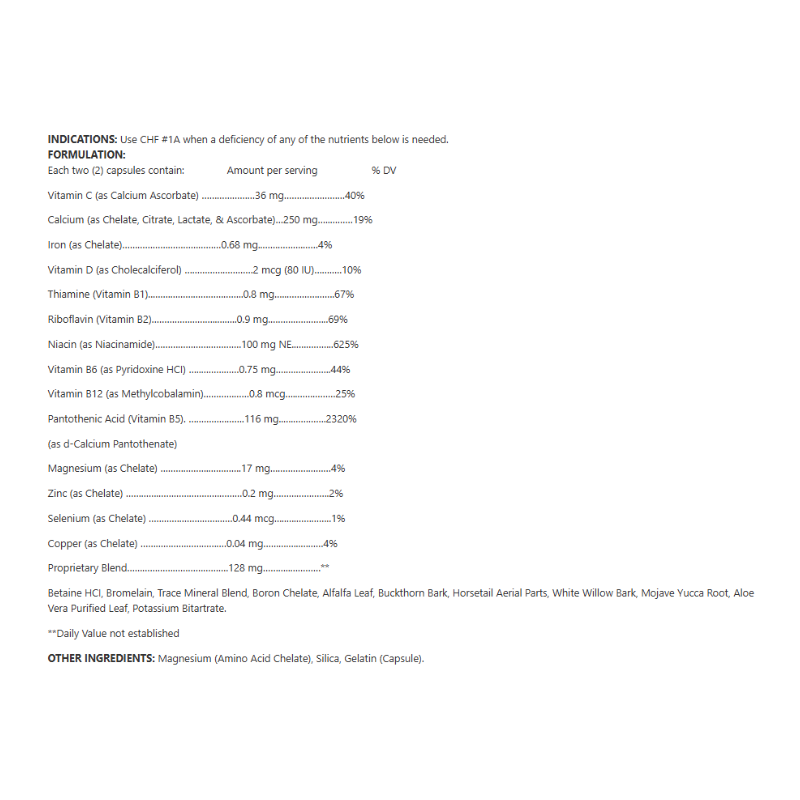 CHF #1A Joint Aide is a synergistic blend of traditional herbs formulated to support joint health, reduce inflammation, and promote overall mobility. This supplement combines the wisdom of herbal medicine with modern needs, offering a natural approach to maintaining joint comfort and flexibility.*