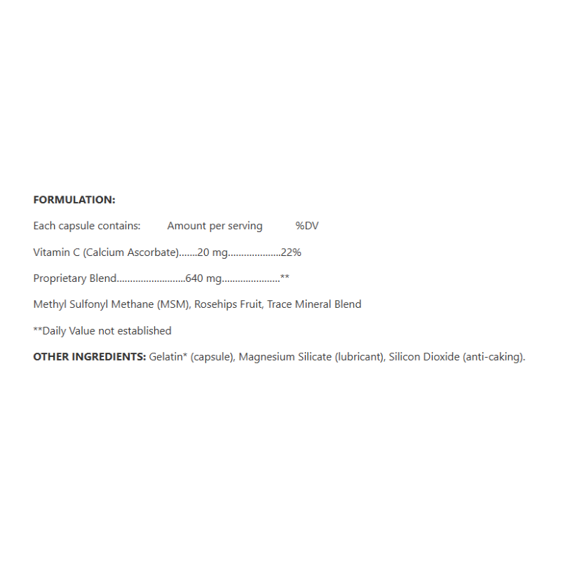 - Methylsulfonylmethane (MSM) – A natural sulfur compound that supports joint and connective tissue health*