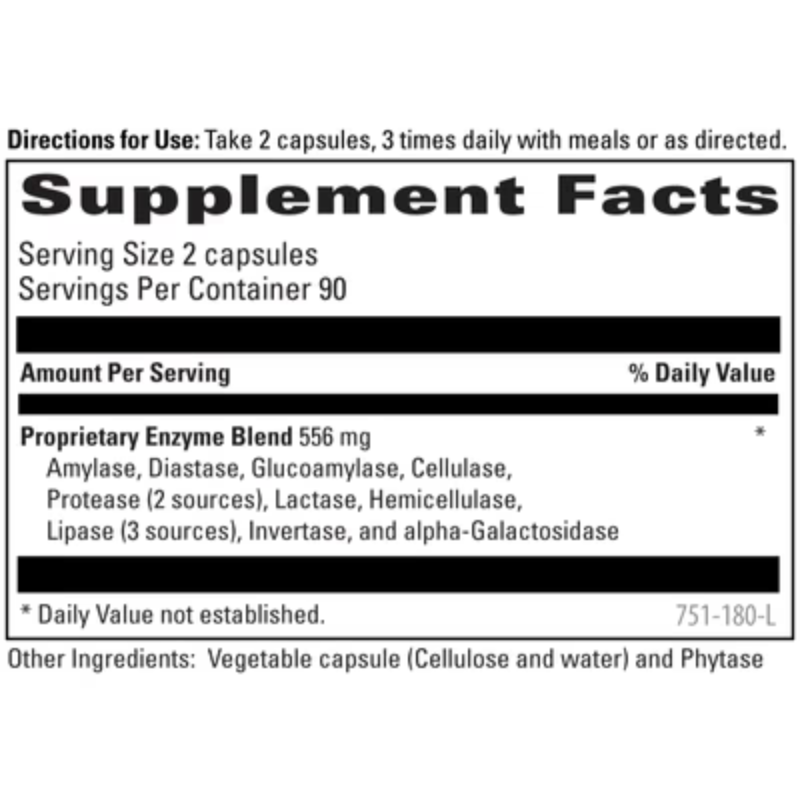- Alpha-Galactosidase – Helps digest complex carbohydrates*