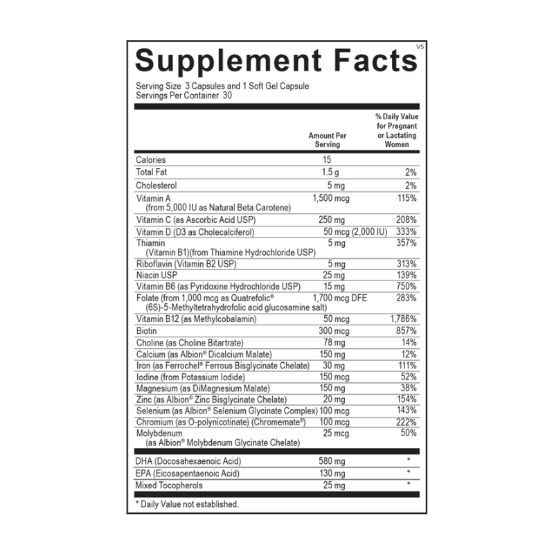 Prenatal Complete with DHA is a professional-grade multivitamin and mineral supplement carefully formulated to support the nutritional needs of women before, during, and after pregnancy. This comprehensive formula includes key nutrients such as methylated folate, bioavailable iron, and 200 mg of omega-3 DHA per serving to promote healthy fetal brain and eye development, cardiovascular support, and maternal well-being.