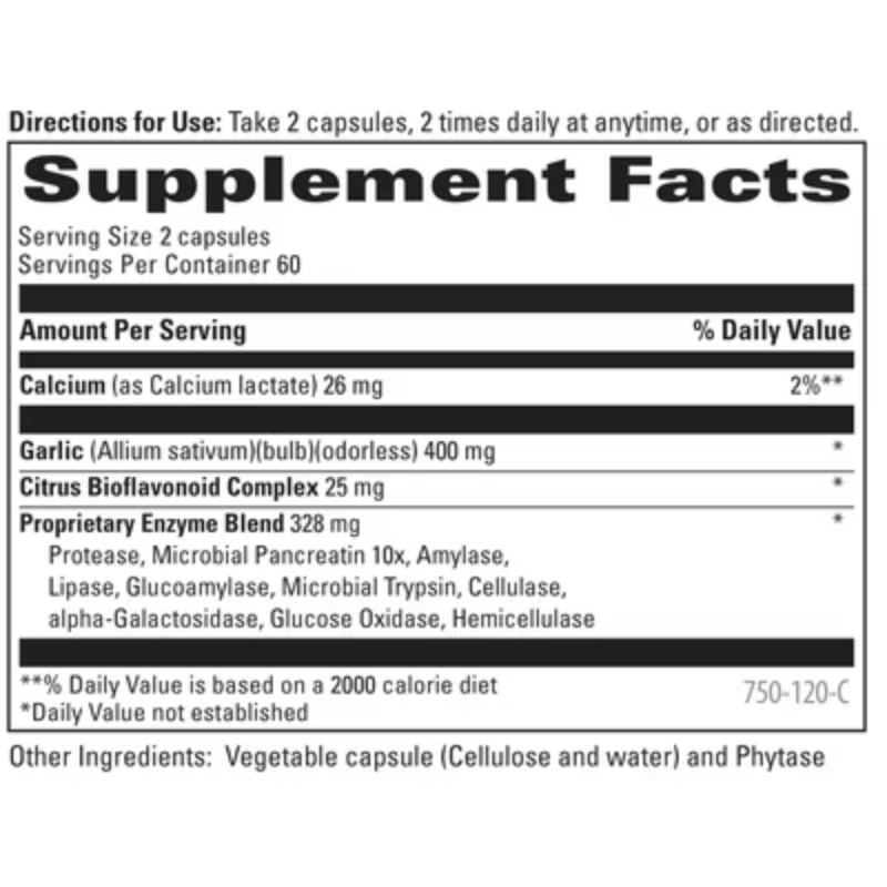 - Enzyme Blend: Protease, Microbial Pancreatin 10x, Amylase, Lipase, Glucoamylase, Microbial Trypsin, Cellulase, Alpha-Galactosidase, Glucose Oxidase, Hemicellulase, Phytase – Facilitates comprehensive digestion and nutrient absorption*